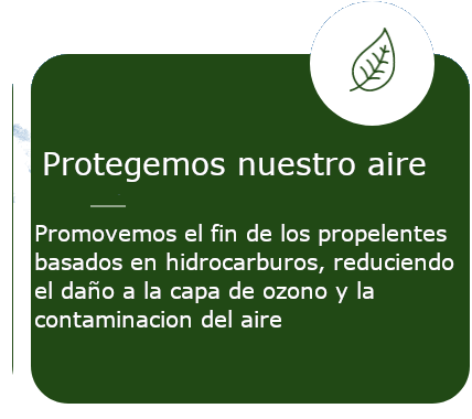 Sin propelentes de hidrocarburos: confirmado que no utiliza hidrocarburos que contribuyen a la contaminación del aire.